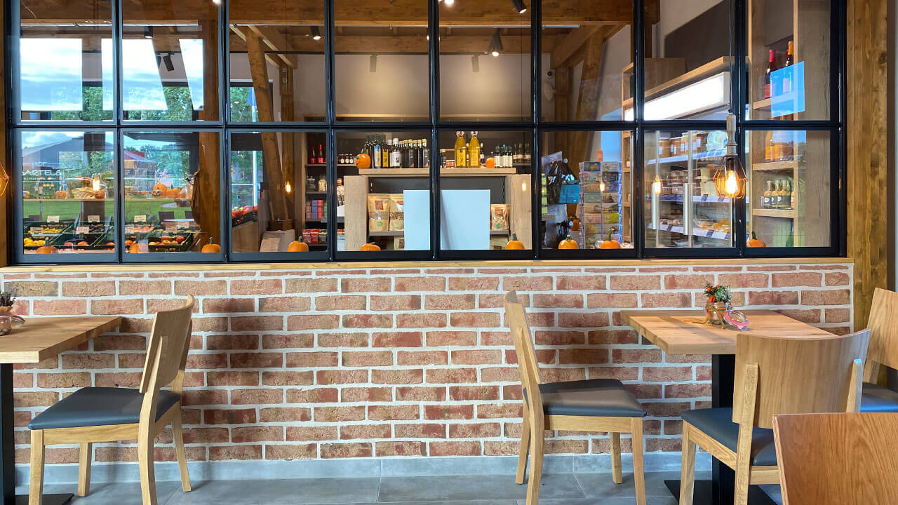 Wo einst die Tiere in Stallungen untergebracht waren, erstrahlt heute ein wunderschöner Hofladen mit ganzheitlichem Sortiment und einem zusätzlichen Cafébereich.