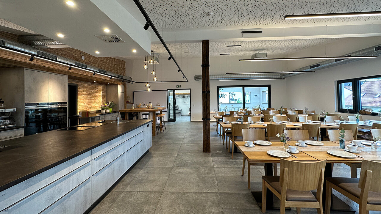 Laden mit Café – am Anfang der Zusammenarbeit standen viele verschiedene Ideen und Impulse im Raum. Diese galt es im Laufe der Zeit zu einem großen Ganzen, aber vor allem stimmigen und gut funktionierendem Konzept zusammenzuführen. Neben dem Laden mit einem gemütlichen Gastro-Bereich haben unsere Planer auch eine Eventküche entworfen, in der nun regelmäßig Kochkurse und Feste stattfinden.