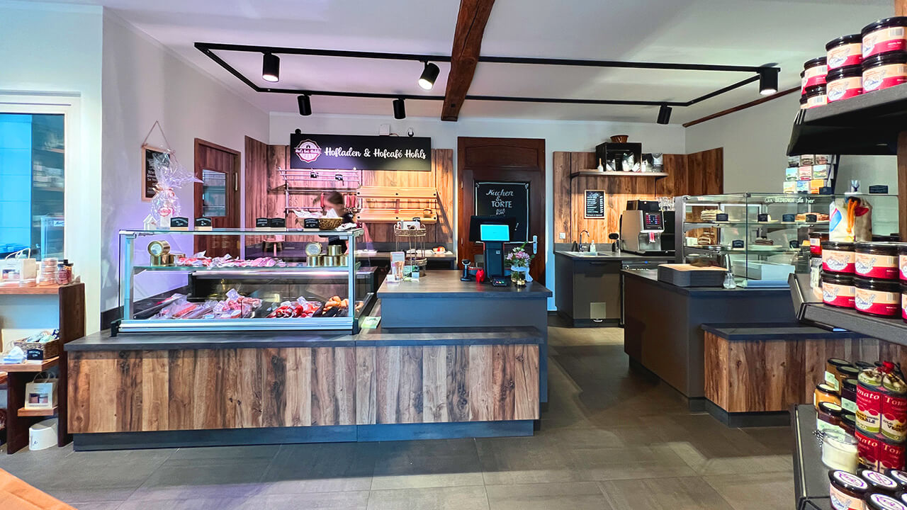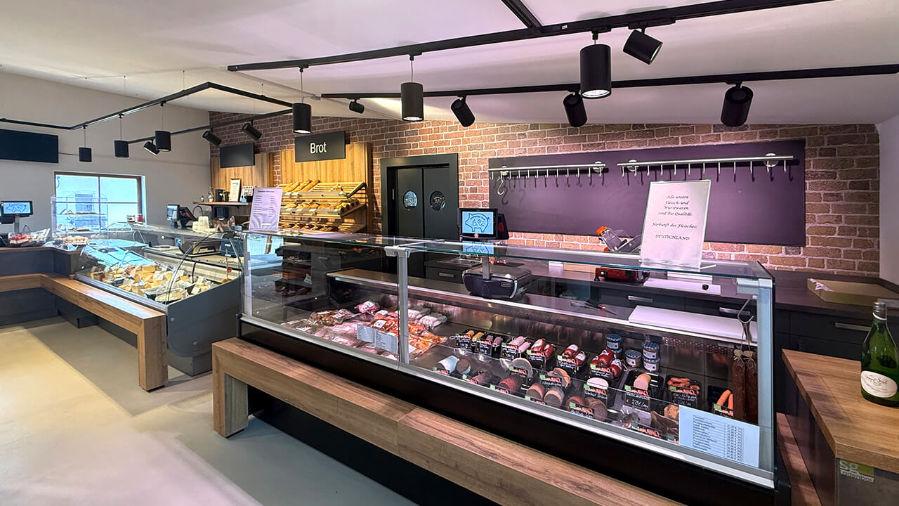 Mit viel Liebe zum Detail und dem Fokus auf eines der Hauptsortimente, dem Fleisch, entstand ein Hofladen, der Tradition und zeitgemäße Präsentation perfekt verbindet.