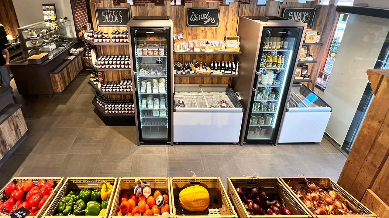 Was als kleiner Selbstbedienungsladen mit Automatensystem begann, hat sich in nur einem Jahr zu einem echten Treffpunkt entwickelt. Der Andrang war so groß, dass die Verkaufsfläche kurzerhand verdoppelt wurde. Heute läuft der Verkauf an sechs Tagen über das moderne SB-Kassensystem – und dienstags verwandelt sich der Hofladen in ein Feinkost-Paradies mit persönlicher Bedienung.