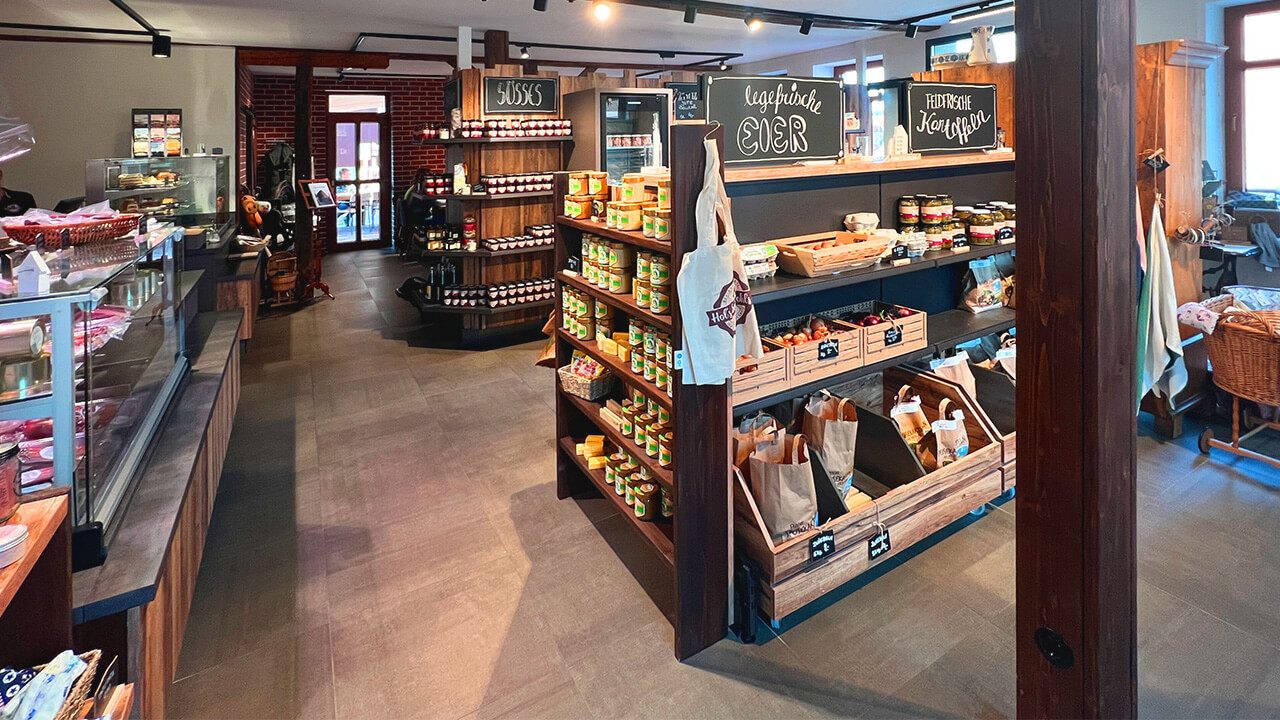 Wo einst die Tiere in Stallungen untergebracht waren, erstrahlt heute ein wunderschöner Hofladen mit ganzheitlichem Sortiment und einem zusätzlichen Cafébereich.