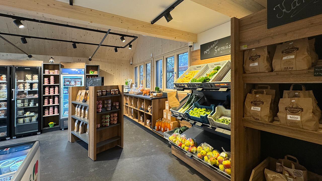 Direktvermarktung hat bei Familie Vollmer Tradition – begonnen hat alles im alten Milchhäusle in Oberboihingen. Doch dieses wurde mit der Zeit zu klein, und so entstand die Idee: aus eins mach zwei. Neben dem Milchhäusle wurde ein neues Hofladen-Gebäude komplett aus Holz errichtet – modern, einladend und mit der Qualität zum Dorfladen.