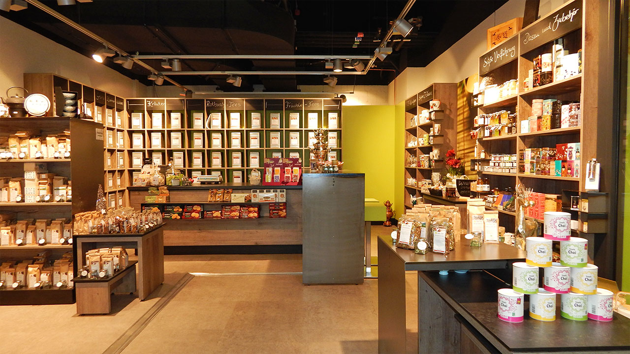 Zurückhaltende klare Linien und eine durchweg kubische Anordnung und Gestaltung der Möbel bilden den optimalen Rahmen für das sortenreiche Angebot im Teeladen. Die Setzkastengrößen hat das Golze Team speziell abgestimmt und mit einigen flexiblen Tischen als Aktionsflächen kombiniert. Ein Materialmix aus Altholz in Kombination mit geglühtem Stahl sorgt zusätzlich für eine ganz besondere Atmosphäre.